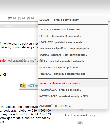 STEP 3 - z rozbaľovacieho menu vyberte položku [ PROFIL ]